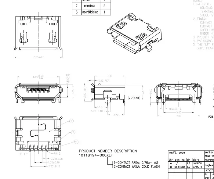 Micro B Usb Jack Pinout Specifications Connections Datasheet